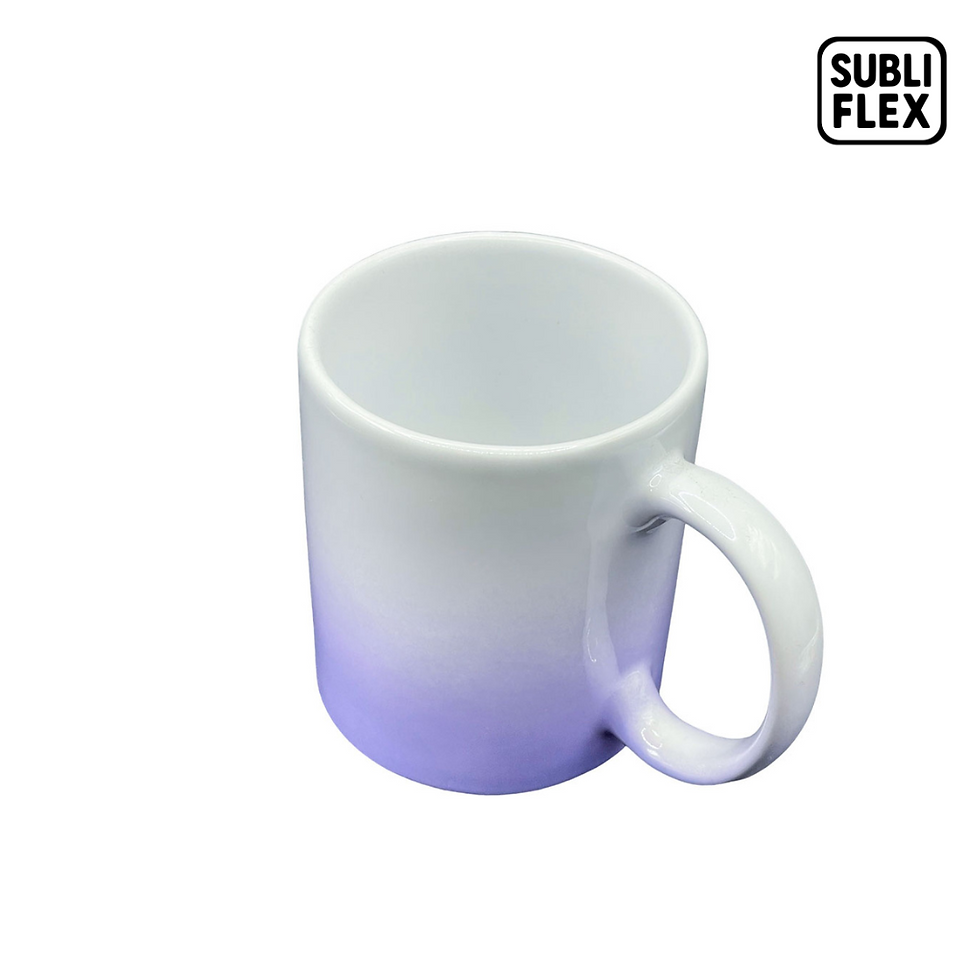 Caneca Branca de Porcelana Degradê Lilás Subliflex para Sublimação - 320ml